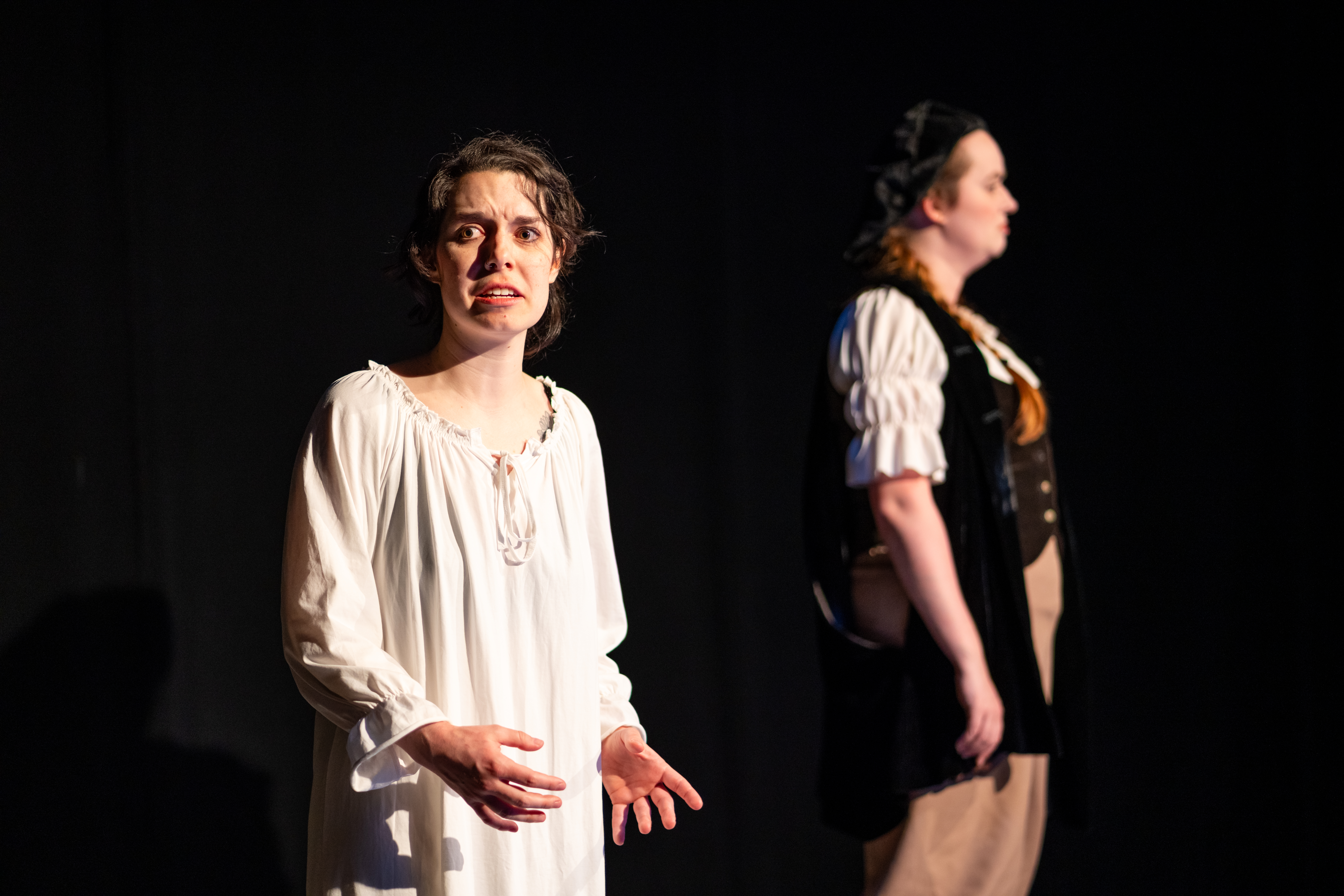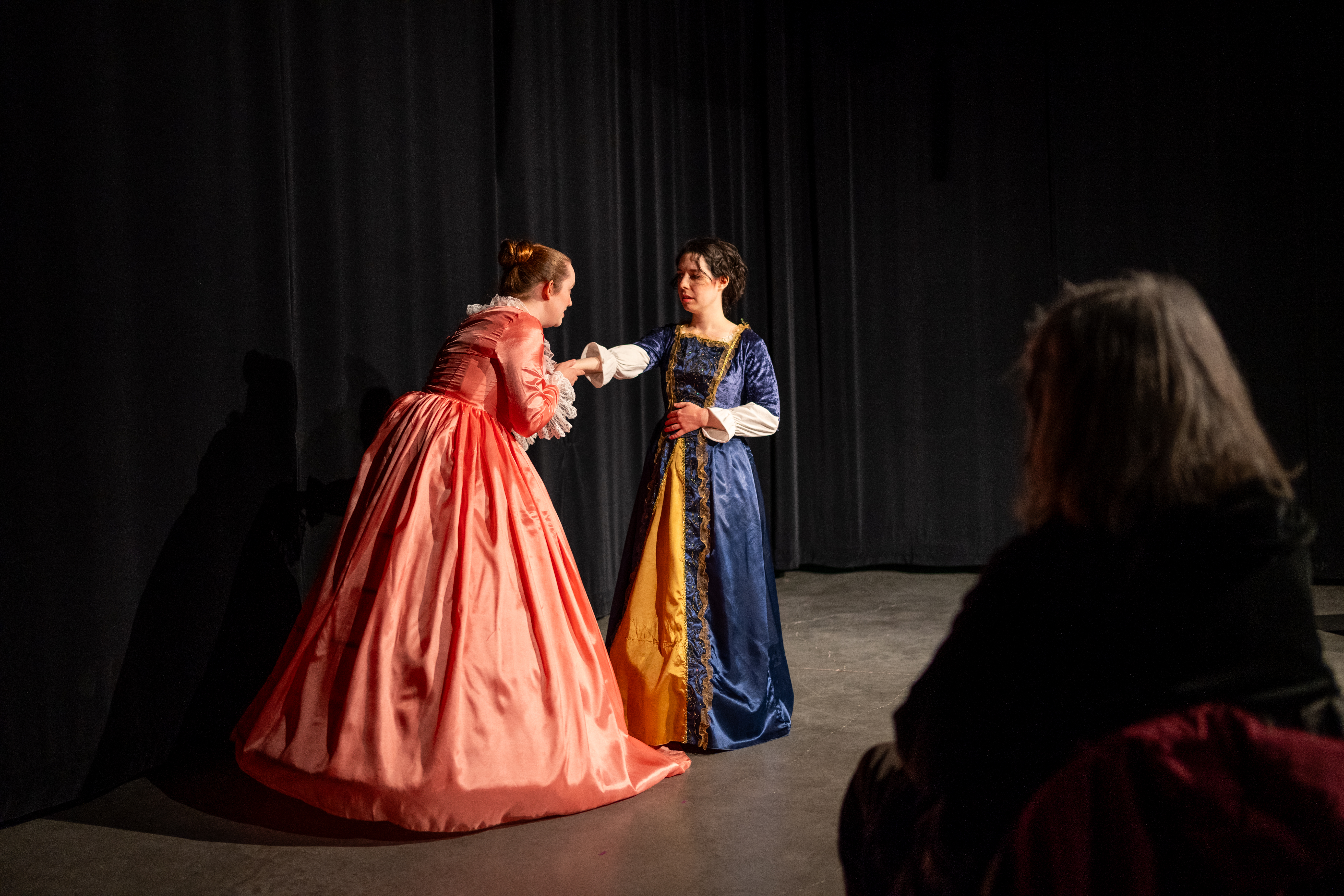 The Lark and the Nightingale is a queer retelling of William Shakespeare’s Romeo and Juliet and Othello. Juliet and Desdemona, two characters canonically destined for tragic endings, break away from their scripts and attempt to find happiness in each other. Desdemona battles duty with love while Juliet struggles to let love consume her entirely. When confronted with their scripted ends, they must advocate for one another and prove that their love is worth fighting for.